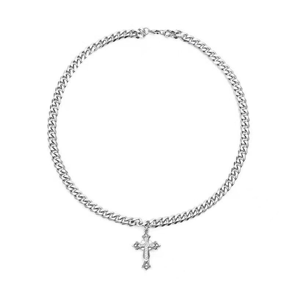 Titânio aço Cuba cadeia cruz pingente homem colar cubano