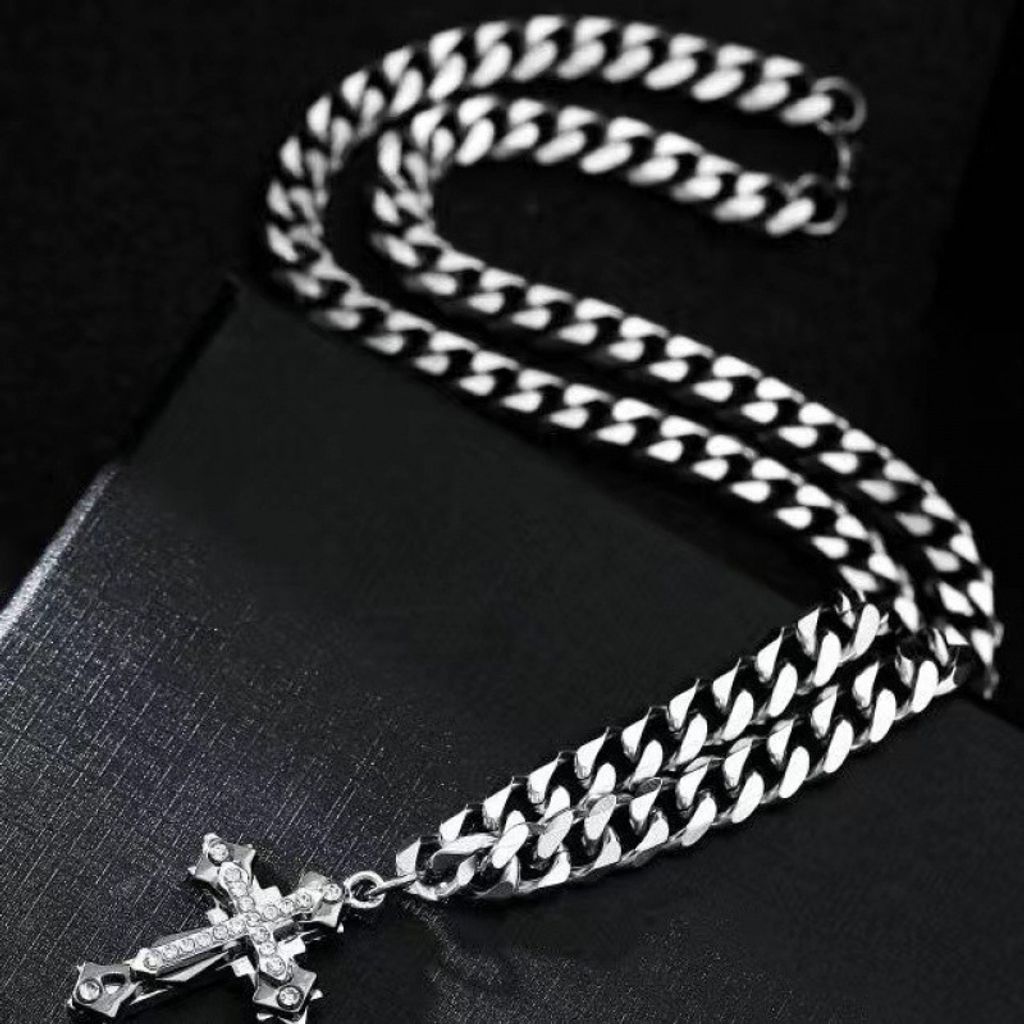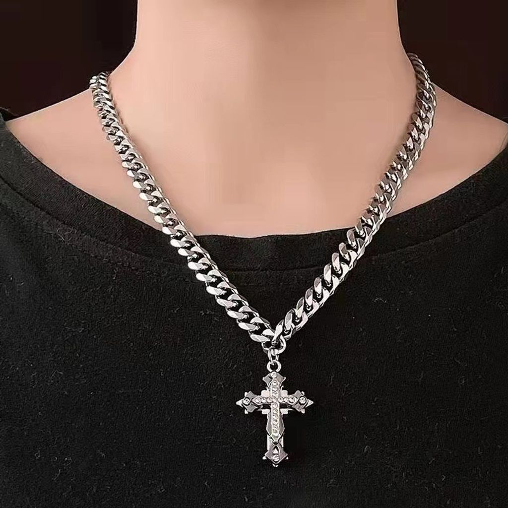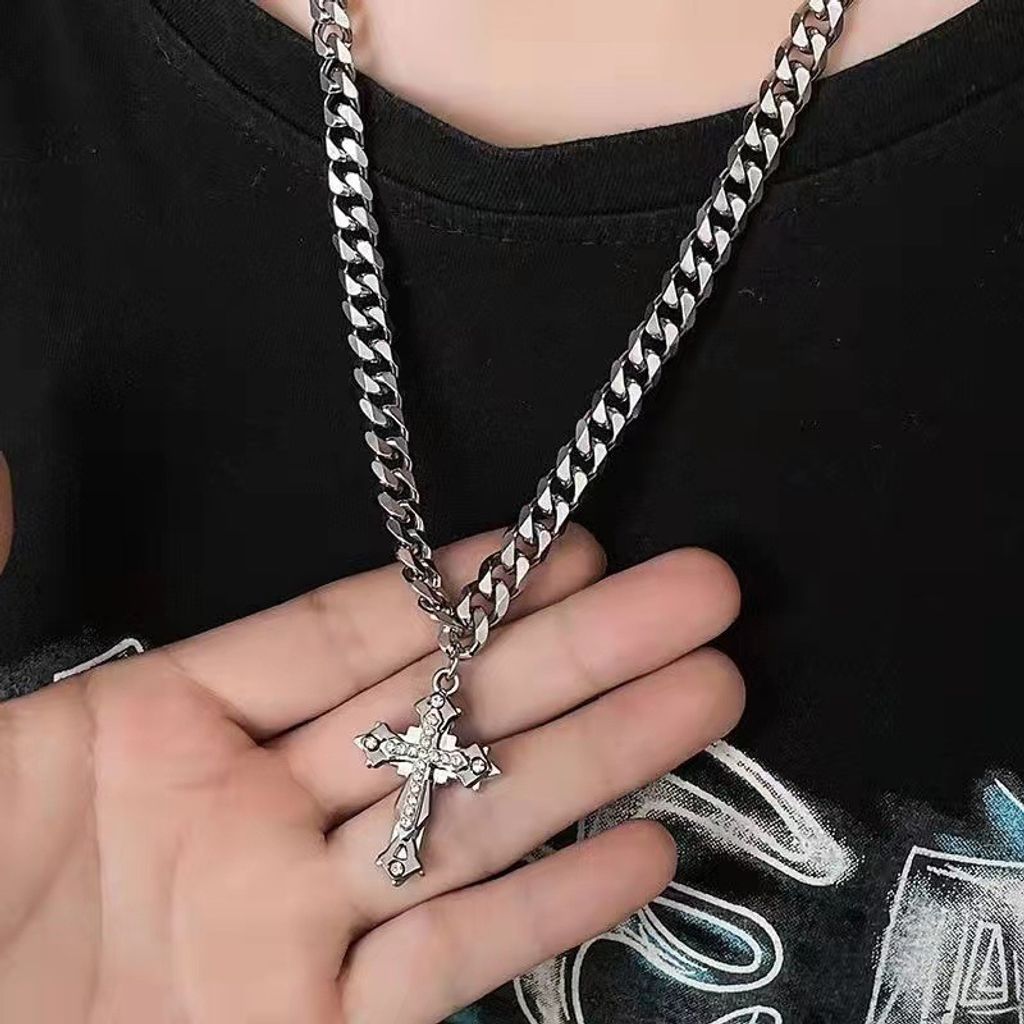 Design de estilo: corpo de cadeia cubano ultra-fino de 7 mm, ligações de cadeia apertadas e suaves, adequadas ao pescoço sem pressionar a pele; Combinado com um pingente de cruz de diamante de três camadas, a decoração de diamante aumenta a sofisticação, o hip-hop e a sensação de luxo leve, para o dia-a-dia, festas e muitas outras ocasiões.