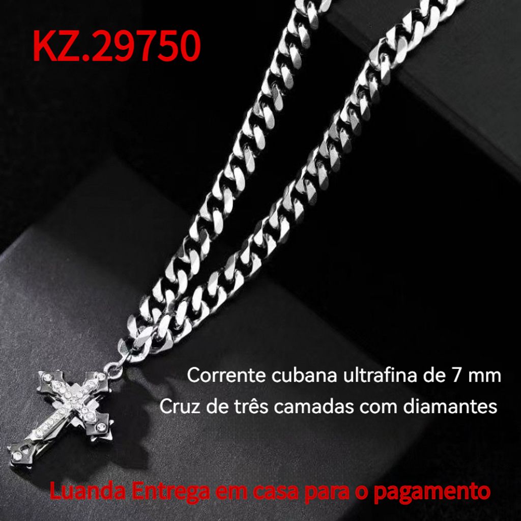 Serviço atencioso: suporte à entrega em casa e pagamento na região de Luanda, produtos de boa qualidade são fáceis de obter. Aço 7mm super fina cadeia cubana + três camadas de diamantes cruz pingente masculino moda hip hop colar